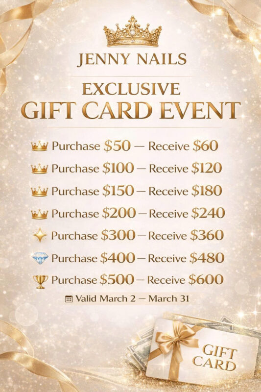 According to many customers’ comments, Jenny Nails has a comfortable, relaxing, private atmosphere, and great service. Jenny Nails is more like a mini spa than a normal nail salon. Let’s come and experience it!
